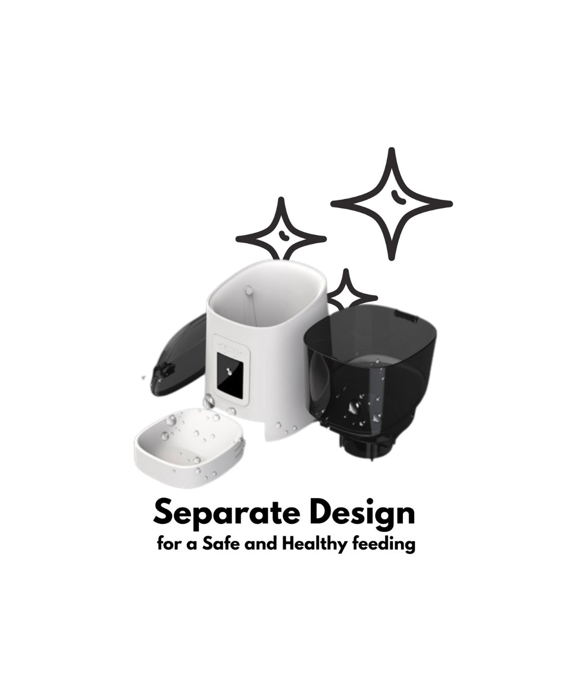 Our pet feeder's scheduled feeding feature ensures your pet is fed right on time, every time, eliminating the stress of irregular feeding and freeing you from daily hassle. Enjoy peace of mind with our easy-to-use scheduling system, providing consistent meals and promoting your pet's well-being.